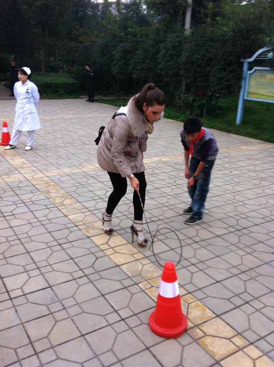 Stop nummer tre va de absolut roligaste. Vi stannade på en Kinesisk skola och fick leka med barnen. Innan vi åkte dit så köpte jag och Maria kassvis med kakor och godis till barnen och det uppskattades! hehe.