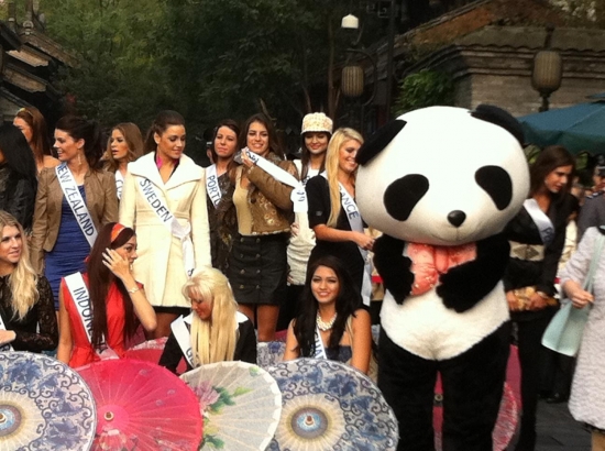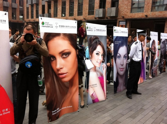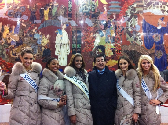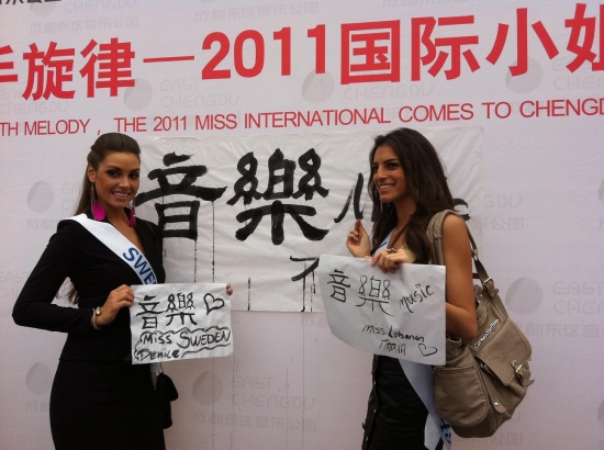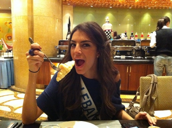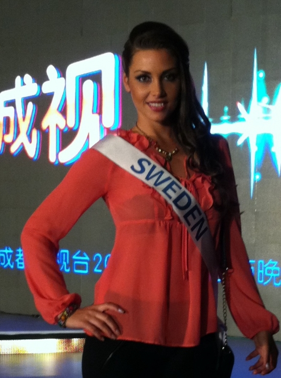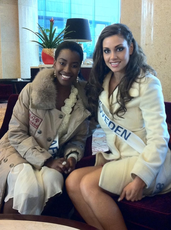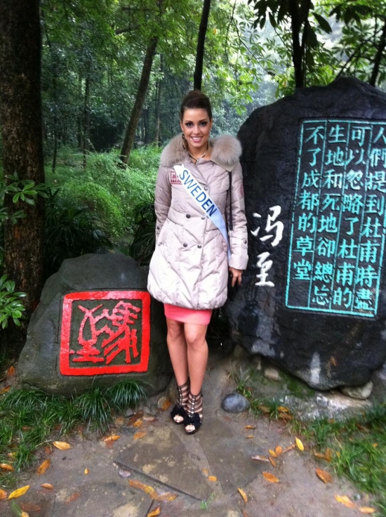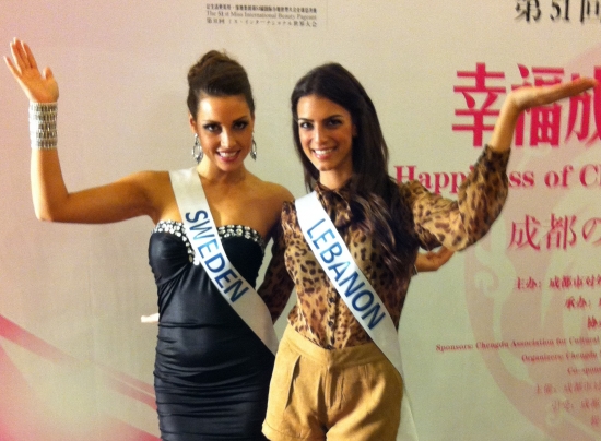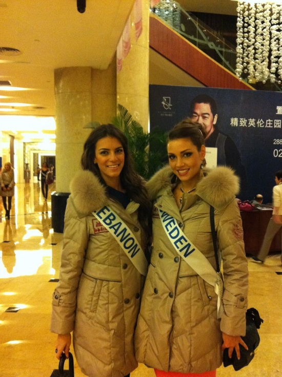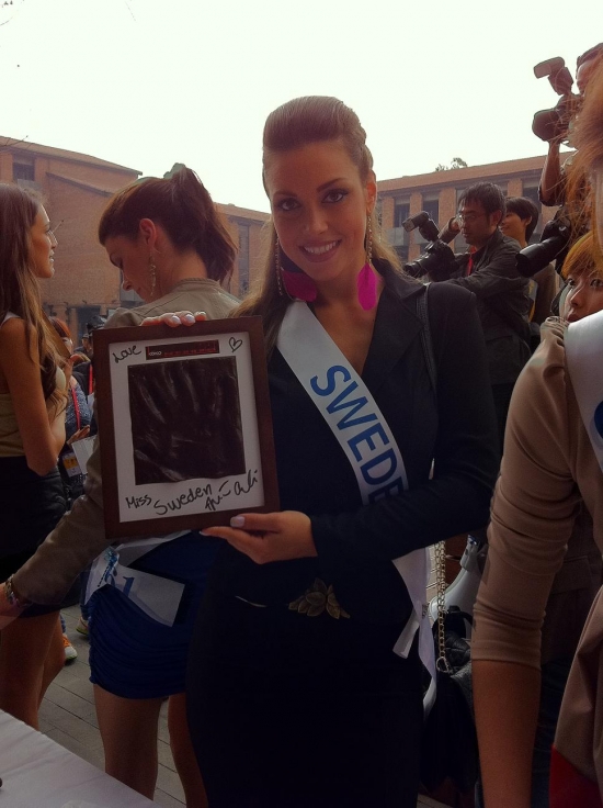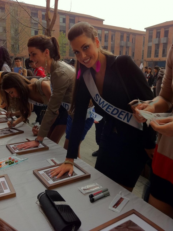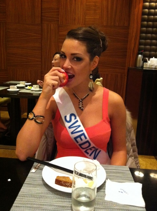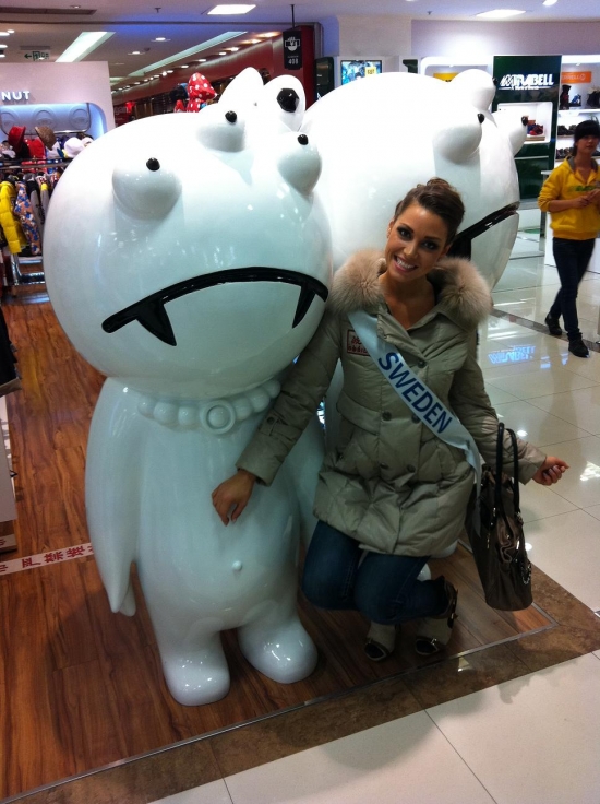 Därefter bar de av till hotellet igen för lunch och ytterligare intervjuer och massor av fotografering. Nu ska vi snart bege oss iväg till ett shoppingcenter här och vi tjejer ska få shoppa lite. Jag hoppas att jag kan hitta nåt ställe som jag kan köpa en ny plattång på då min typ exploderade igår! Och det går ju inte att vara här i ytterligare två veckor utan att varken kunna platta eller locka håret! Vilka I-lands problem va, hehe. Ska jag fundera lite på mitt tal, vi alla tjejer ska förbereda oss på att hålla tal på en gala här, dock kommer de bara vara 20 st tjejer (hur dom nu kommer välja ut dom, hmmm) som kommer få hålla sitt tal på galan.