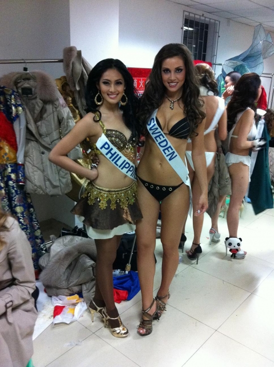 Då va ännu en dag avklarad =) Dagen började med bikiniplåtning på morgonen. Därefter hade vi lite ledigt och lunch på hotellet för att sedan ha genomgång på scen. Kvällen bjöd på en middag med live sändning på scen. Massa rolia framträdanden och de hade varit kul om man förstått va dom sa också.=) Bjöds på både dans och show av alla dess slag. Och vi i Miss International fick bjuda på en liten show i våra national costume. Därefter fick vi byta om till klänning och avnjuta showen som åskådare (dock fortfarande med 100 kameror runt om sig som fotar en så fort man vistas utanför hotellrummet)