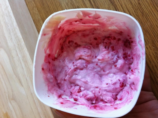 - Frysta hallon (ca 1 dl till 250g kesella)