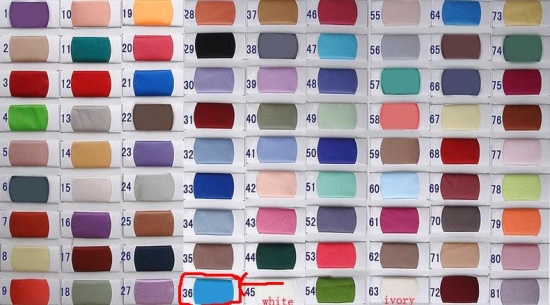Klänningen kommer att sys upp i en turkos färg, alltså inte i brudvitt som på bilden. Alla deras klänningar på sidan går att få i önskad färg. Jag valde färgen nummer 36 på denna karta: